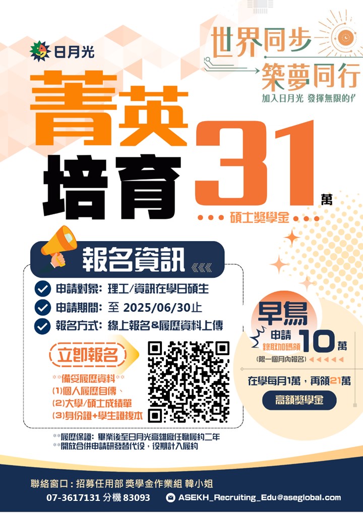 [日月光半導體] 2025菁英培育獎學金計畫開跑了